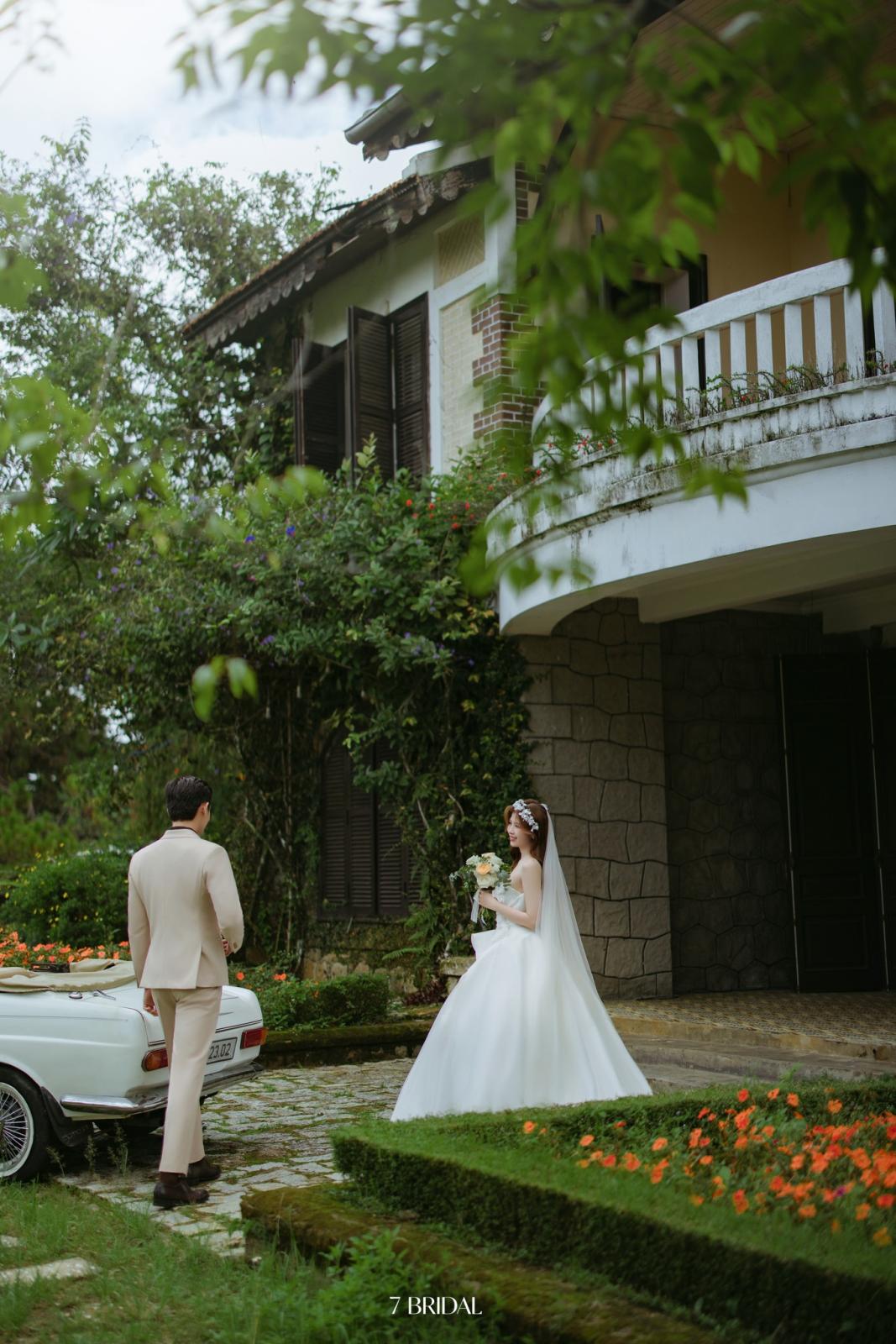 Giữa khuôn viên xanh mướt của những biệt thự Pháp cổ, một nàng thơ khoác lên mình chiếc váy trắng tinh khôi tiến về phía chàng trai đang đợi bên chiếc xe mui trần cổ điển. Từng bước chân là từng nhịp thở của tình yêu – nhẹ nhàng, lãng mạn và đầy thanh lịch.