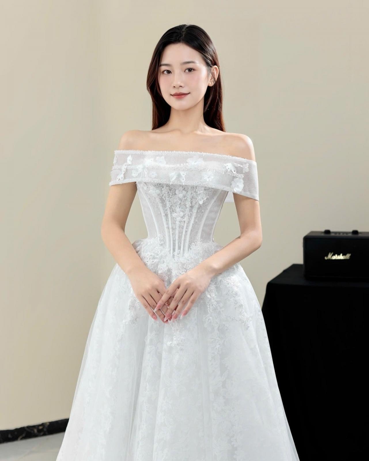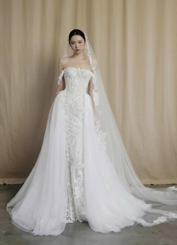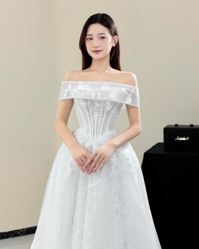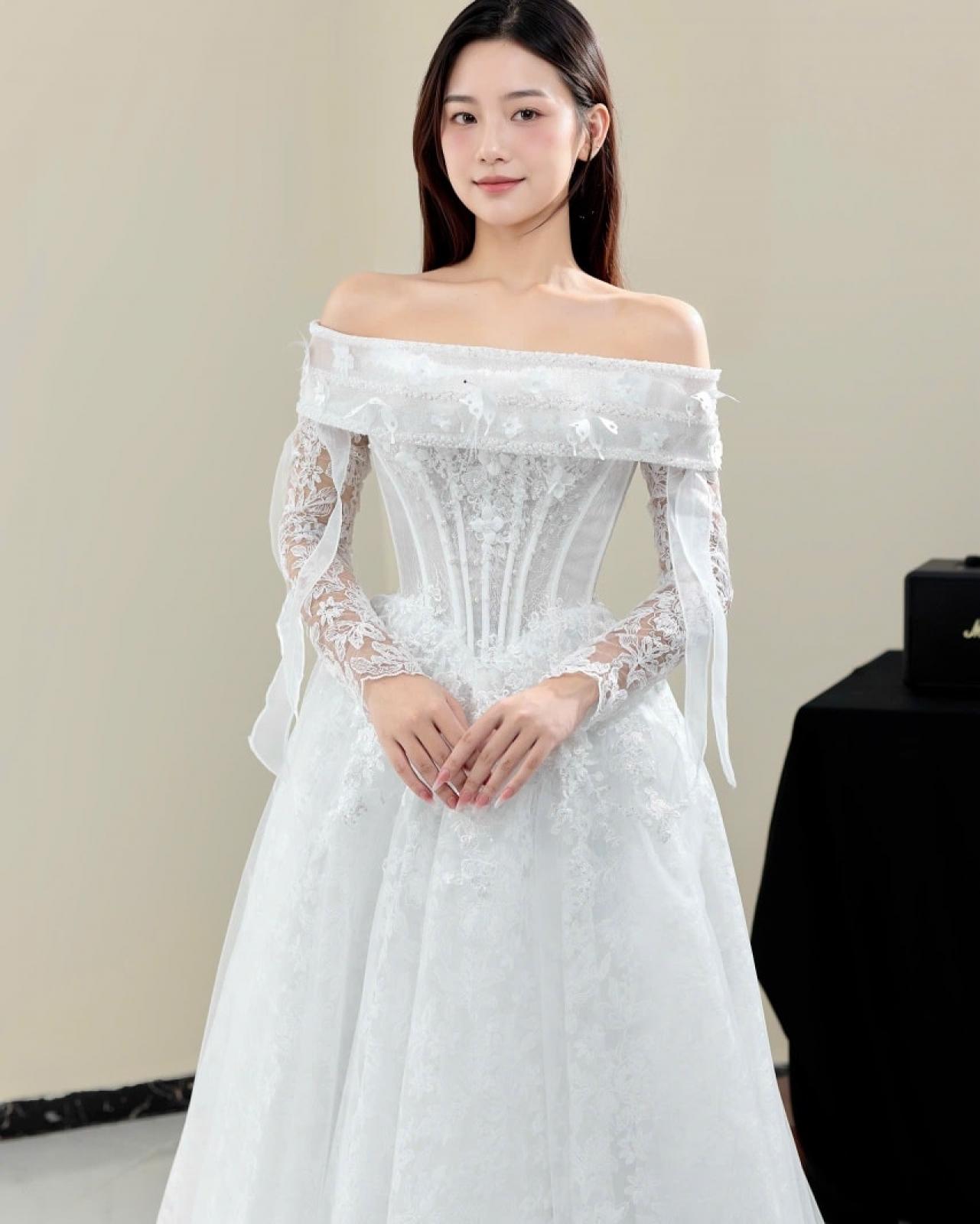 Look 5 là lựa chọn dành cho những nàng dâu yêu vẻ đẹp tinh tế, sang trọng nhưng vẫn giữ trọn nét thuần khiết và lãng mạn – một khoảnh khắc rực rỡ, nhẹ tênh và đầy cảm xúc khi bước vào lễ đường 🤍✨