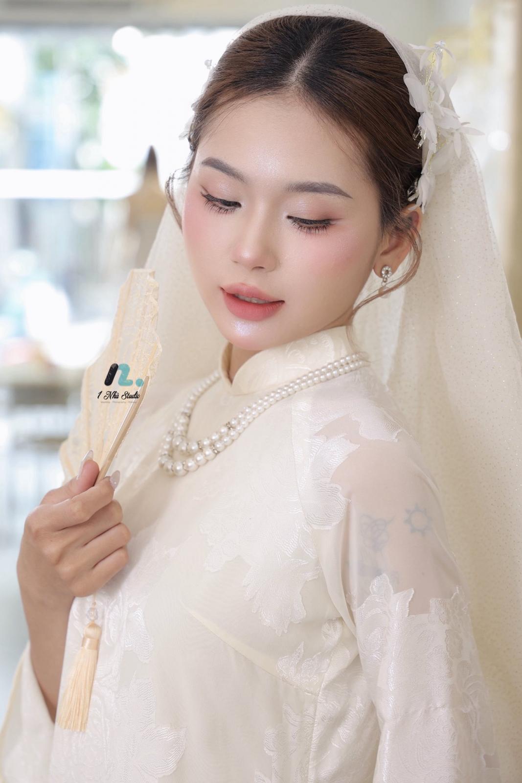 “Không cần quá nhiều sắc màu, chỉ cần nét đẹp thuần khiết trong chiếc áo dài cưới – cũng đủ khiến khoảnh khắc này trở nên vĩnh cửu 💍”