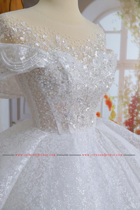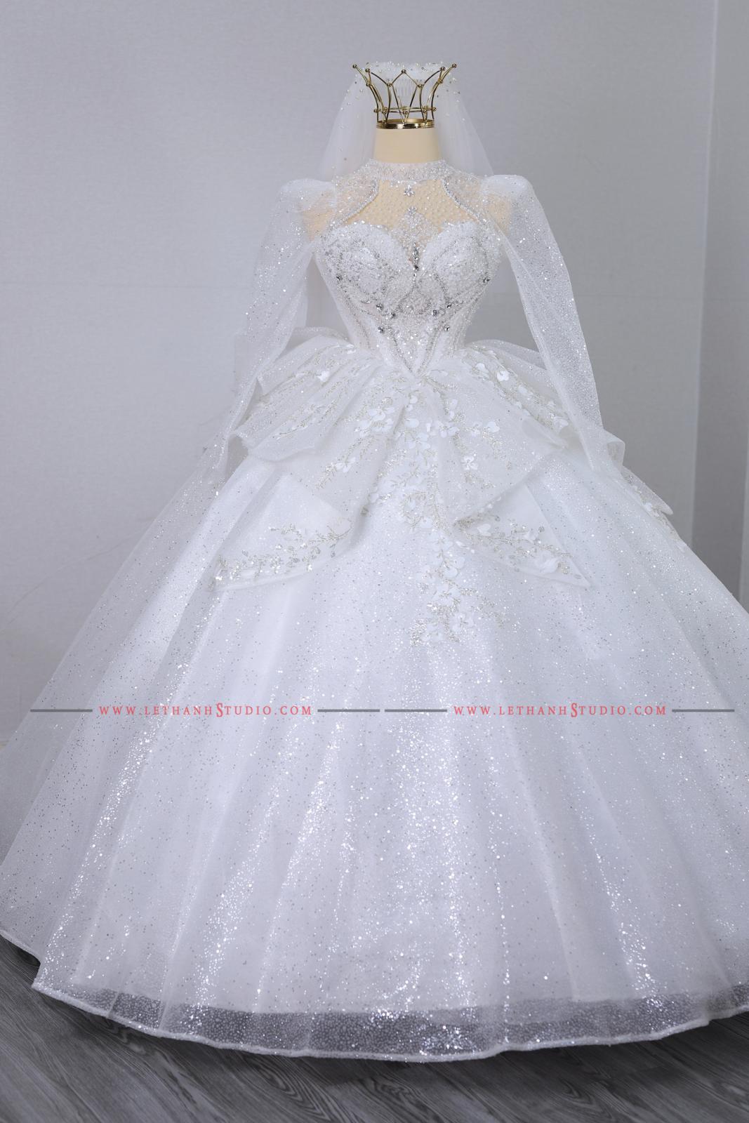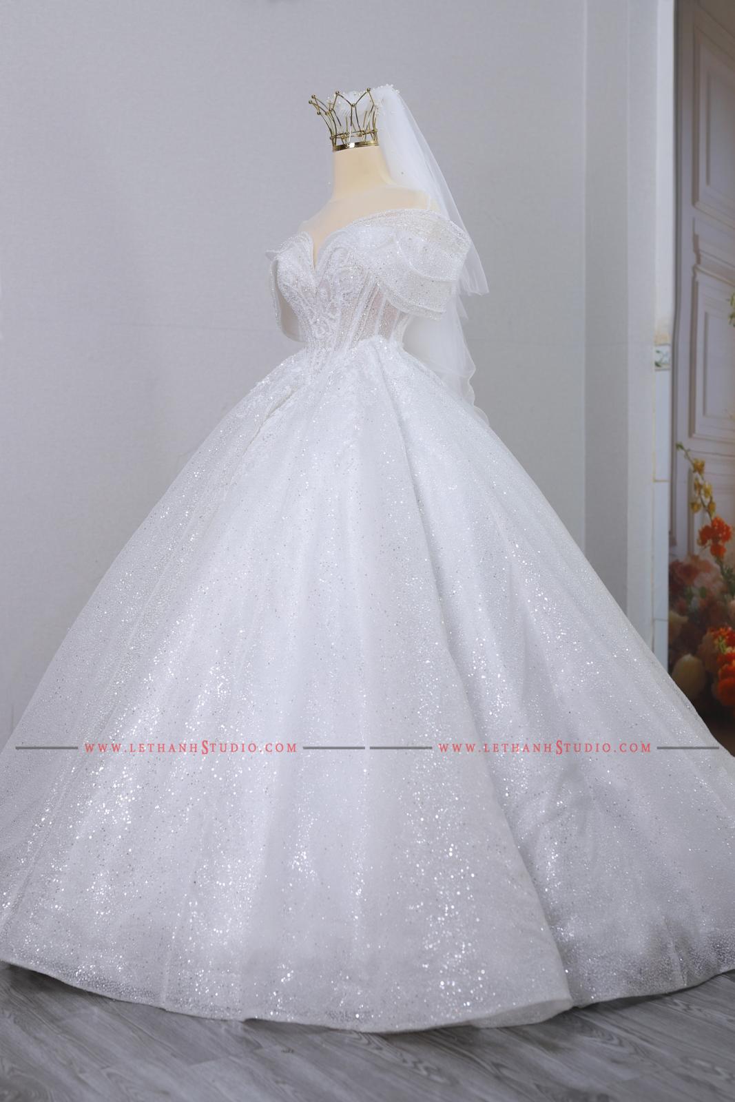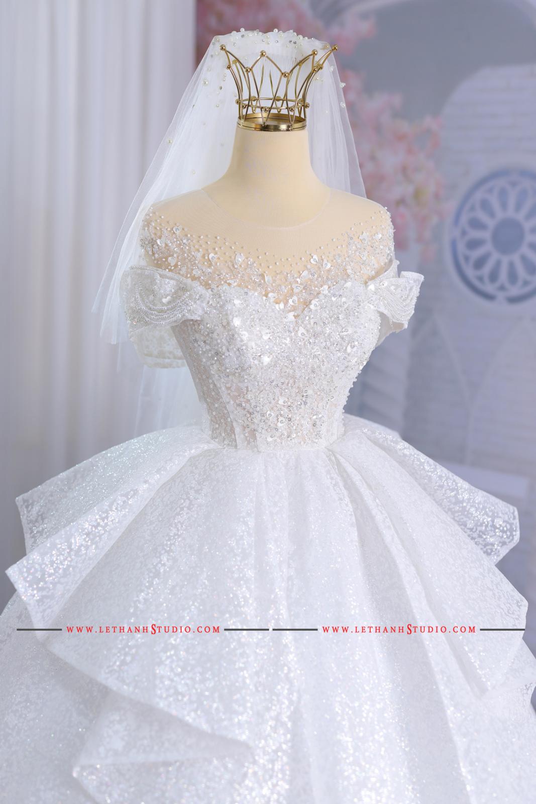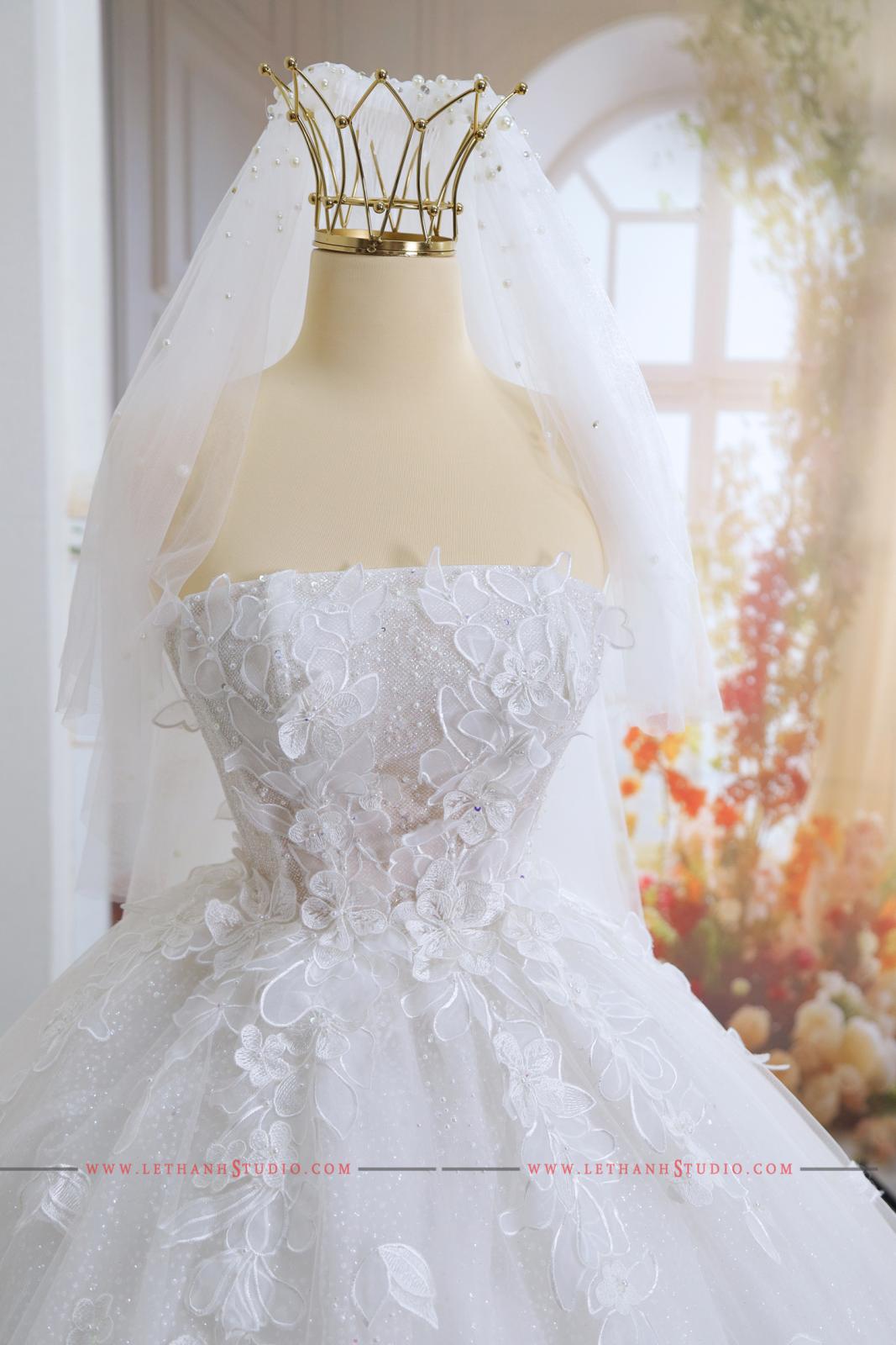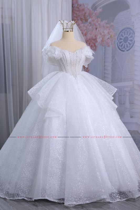 Chiếc váy cưới màu trắng bồng bành khiến các nàng dâu trở nên ngọt ngào, xinh xắn và nữ tính hơn bao giờ hết.