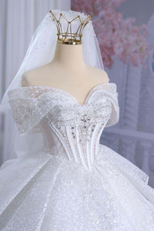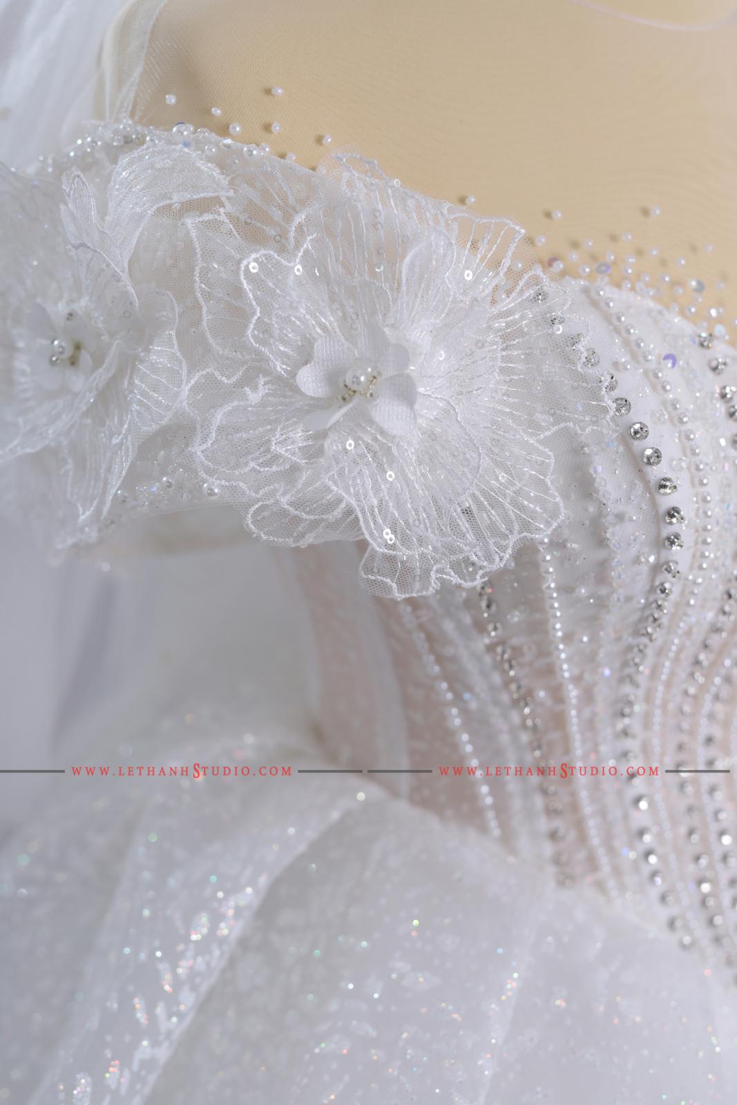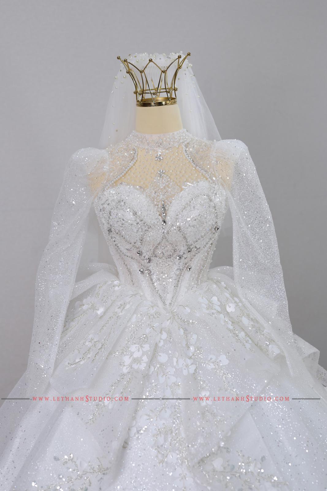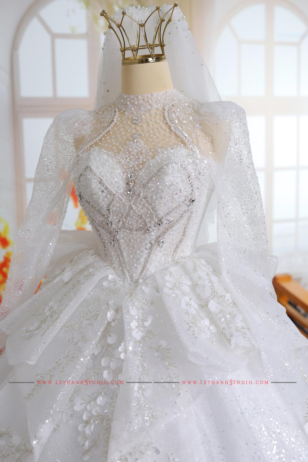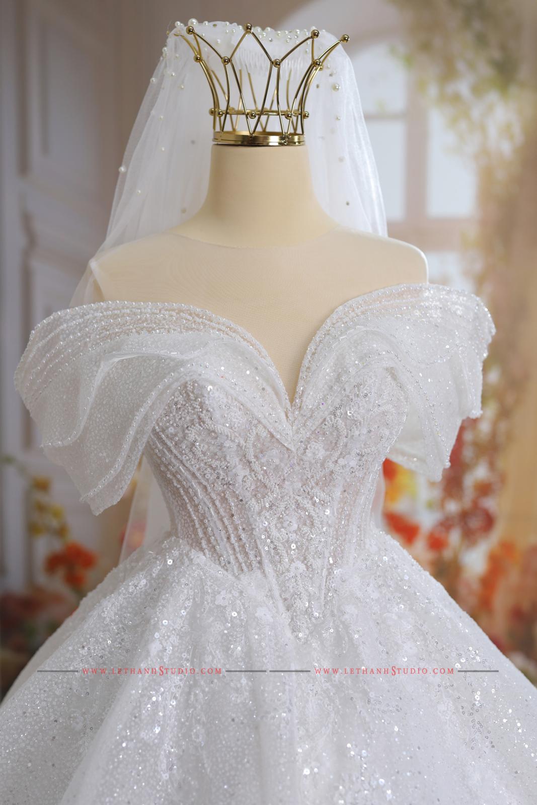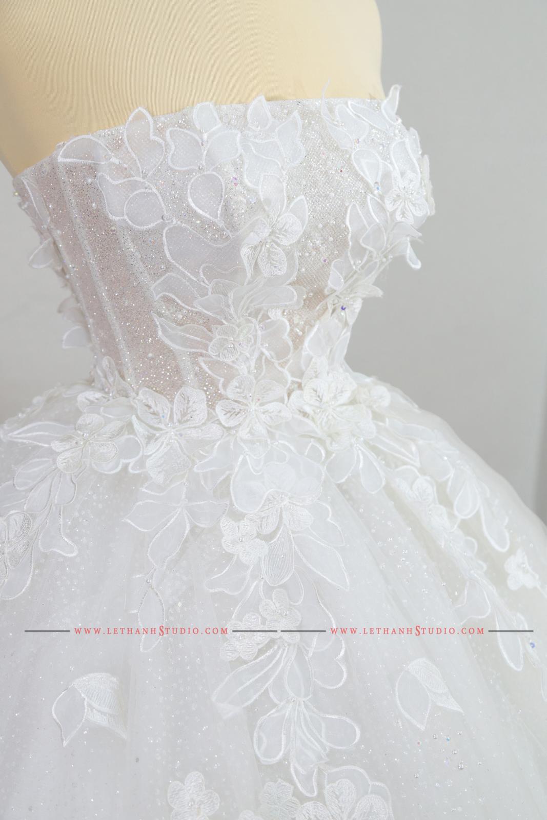 Chiếc váy cưới màu trắng bồng bành khiến các nàng dâu trở nên ngọt ngào, xinh xắn và nữ tính hơn bao giờ hết.