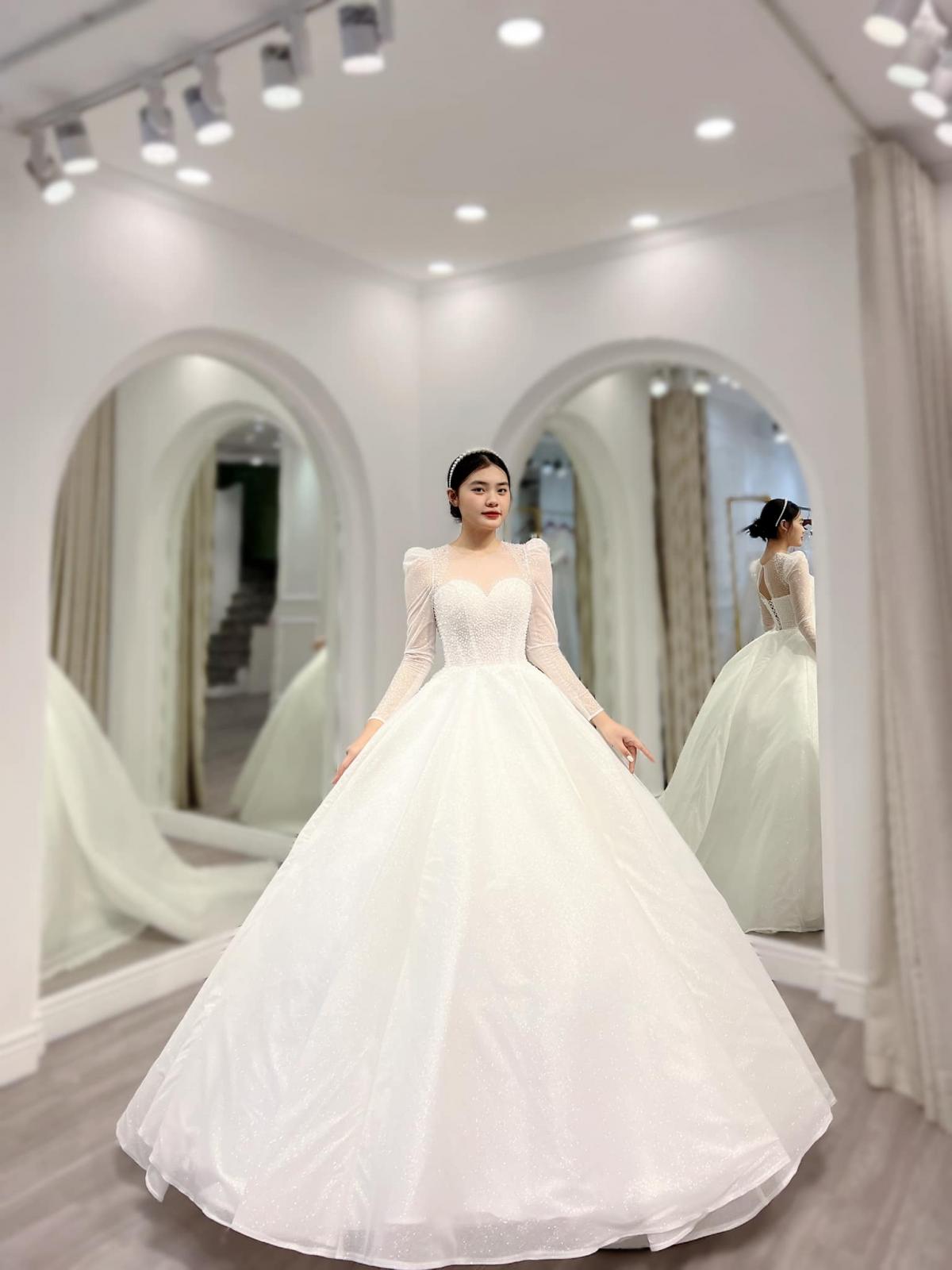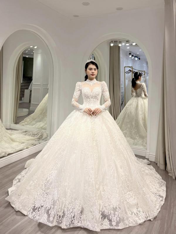 Mang đến giấc mơ hoá thân thành cô gái hạnh phúc nhất trong ngày trọng đại - mẫu váy được Thuý Hiệu đặc biệt chuẩn bị cho nàng dâu tựa như một câu chuyện cổ tích về tình yêu của nàng công chúa xinh đẹp tìm thấy chàng hoàng tử của đời mình.
