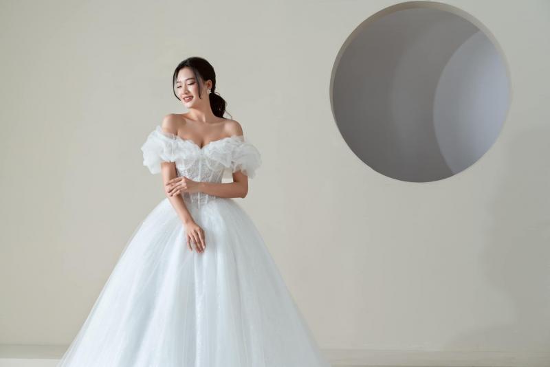 Lựa chọn chất liệu mềm mại, trong trẻo là tulle kết hợp với ren hoạ tiết thêu1 ... See more